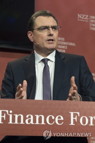 △ (epa=연합뉴스) 토머스 조던 스위스 중앙은행 총재가 29일(현지시간) 스위스 베른에서 열린 국제 금융 포럼에서 스위스 프랑화가 안정될 수 있도록 외환 시장에 개입했다고 밝히고 있다. 2016.05.29 rhew@yna.co.kr 04823385 Thomas Jordan, President of the Swiss National Bank, SNB, delivers a speech referring to the international financial problems during the Swiss International Finance Forum (SIFF), in Bern, Switzerland, 29 June 2015. EPA/LUKAS LEHMANN EPA/LUKAS LEHMANN