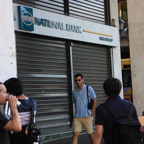 (아테네=연합뉴스) 김준억 특파원 = 그리스 수도 아테네의 주말 내내 닫혔던 은행 지점들의 철문은 월요일인 29일(현지시간) 오전에도 그대로였다.