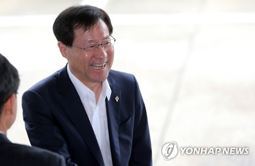 | △ 인사하는 김진태 검찰총장 (대구=연합뉴스) 김준범 기자 = 김진태 검찰총장이 30일 오전 대구 수성구 대구고등검찰청으로 들어서며 관계자들과 인사하고 있다. 2015.6.30 psykims@yna.co.kr |
