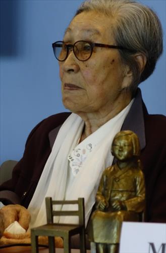 워싱턴D.C.를 방문 중인 김복동 할머니는 이날 조지워싱턴대학 엘리엇 국제대학원 주최로 열린 강연회에서 "서울에서 온 피해자"라며 자신을 소개했다.