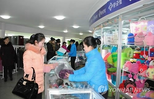 △ 북한, 자정까지 영업하는 편의점 등장 (서울=연합뉴스) 북한에 자정까지 영업을 하는 사실상 편의점 형태의 '연쇄상점'이 등장했다. 재일본조선인총연합회(조선총련) 기관지 조선신보는 19일 '새로운 상업형태/표어는 안정, 편의'라는 제목의 평양발 기사에서 "지난해 12월20일 평양에 새로운 형태의 상점이 개업했다"고 밝혔다. '황금벌상점'이라는 명칭의 이 상점은 식료품과 각종 일용품을 판매하며 아침 6시부터 자정까지 영업을 한다. 2015.1.19 nkphoto@yna.co.kr