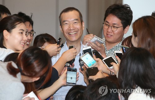 | △ '삼성물산 웃었다' (서울=연합뉴스) 서명곤 기자 = 최치훈 삼성물산 사장이 1일 오전 서울 강남구 삼성 서초사옥에서 열린 수요사장단회의가 끝난 뒤 취재진의 질문에 답하고 있다. 이날 서울중앙지법 민사합의50부(김용대 민사수석부장)는 미국계 헤지펀드 엘리엇 매니지먼트가 낸 '삼성물산-제일모직 합병 금지' 가처분 신청을 기각했다. |