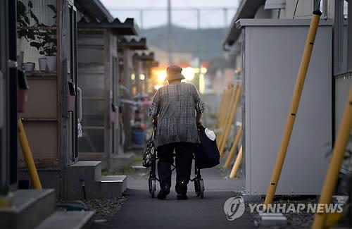| △ 2014년 9월 일본 미야기 현의 한 가설주택 단지에서 걸어가는 노인의 모습. (교도=연합뉴스 자료사진) |