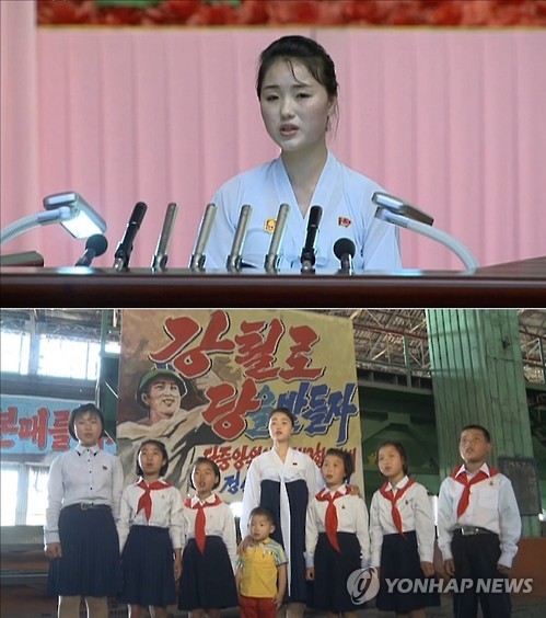 (서울=연합뉴스) 차지연 기자 = 북한이 고아 7명을 거둬 키우는 스무살 미혼 여성을 '처녀어머니'라 부르며 대대적으로 미담을 선전하고 있다.