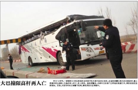 지난달 15일 산시(陝西)성 춘화(淳化)현에서 버스가 벼랑으로 추락해 최소한 35명이 사망하고 11명이 다쳤고, 지난 3월2일에는 허난(河南)에서 달리던 버스가 절벽으로 추락해 20명이 숨지고 13명이 부상했다.