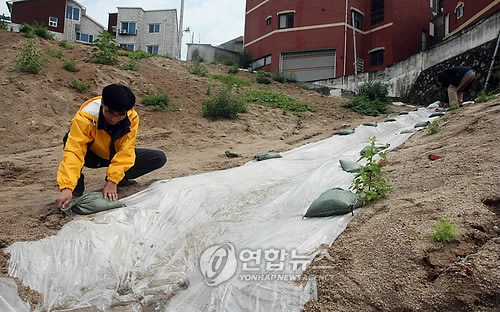 | △ 공무원들이 재해위험지구를 찾아 재난방지 시설물을 점검하고 있다. (연합뉴스 자료사진) |