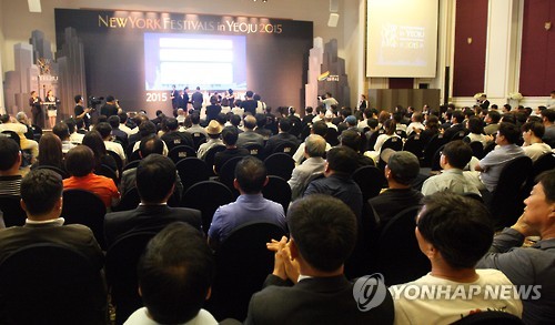 | △ 세종대왕의 얼이 살아숨쉬는 경기도 여주시에서 열린 세계적인 광고축제 '뉴욕페스티벌 in 여주 2015'가 5일 성황리에 막을 내렸다. 사진은 지난 3일 썬밸리호텔에서 열린 시상식 모습. <<연합뉴스 자료사진>> |