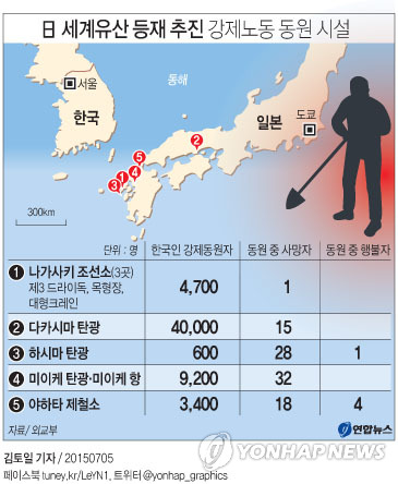 이번에 등재된 23곳 중 하시마탄광 등 7곳에서 조선인 수만명 강제노동