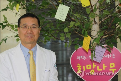 | △ 이기병 평택성모병원 원장 (평택=연합뉴스) 중동호흡기증후군(메르스) 첫 진원지인 경기도 평택성모병원이 6일 재개원했다. 지난 5월 29일 휴원한 지 38일만이다. 평택성모병원은 이날 오전 8시 응급실과 건강검진센터 운영을 다시 시작했고 외래진료도 오전 9시부터 재개했다. 사진은 이기병 원장. (평택성모병원 제공) |