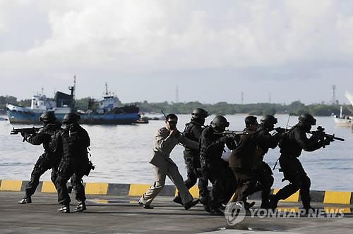 | △ 인도네시아 군인들이 지난 4월 발리에서 대테러 훈련을 하고 있다.(EPA=연합뉴스 자료사진) |
