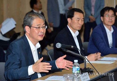 △ 금융위원장-보험업계 실무자 현장간담회 (서울=연합뉴스) 이정훈 기자 = 임종룡 금융위원장이 7일 오후 서울 종로구 도렴동 생명보험 교육문화센터에서 보험업계 실무자들과 현장간담회를 갖고 보험산업 발전 방향 등에 대해 밝히고 있다.