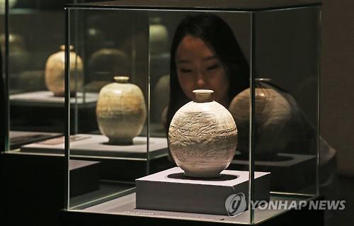 △ (서울=연합뉴스) 홍기원 기자 = 7일 오전 서울 강남구 신사동 호림박물관 신사분관에서 열리고 있는 '선과 면의 만남, 편병(扁甁)'특별전에서 관람객들이 작품을 관람하고 있다. 전시는 10월 30일까지 열린다. 2015.7.7 xanadu@yna.co.kr (끝)