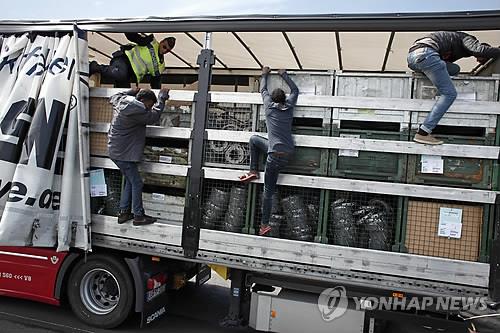 지난달 칼레에서는 선원 파업 여파로 유로터널로 가는 도로에 교통 체증이 빚어지자 난민들이 혼란을 틈타 대거 트럭에 숨어드는 일이 벌어졌다.