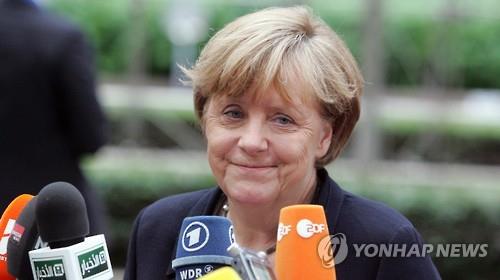 | △ 메르켈 총리가 7일 브뤼셀에 열린 유로존 정상회의에 앞서 기자들의 질문을 받고 있다.(AP=연합뉴스) |