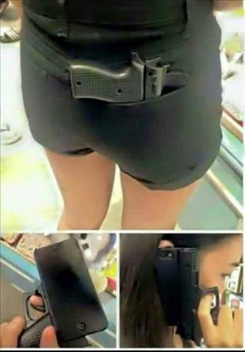(서울=연합뉴스) 한미희 기자 = 총기 사고가 빈발하는 미국에서 총기 모양의 휴대전화 케이스가 인기를 얻고 있다.