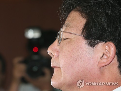 | △ 착잡한 표정 짓는 유승민 (서울=연합뉴스) 진성철 기자 = 새누리당 유승민 원내대표가 8일 국회 정론관에서 사퇴 기자회견을 하는 도중 착잡한 표정을 짓고 있다. 2015.7.8 zjin@yna.co.kr |