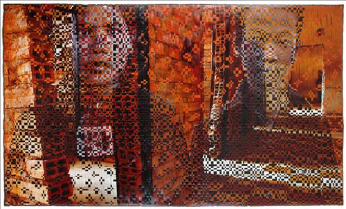 베트남 출신인 딘 큐는 두 개의 사진을 베트남 전통 직물 수공예 기법을 차용한 독특한 방법으로 합성한 작품을 선보인다.