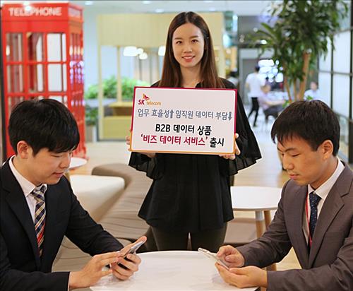 (서울=연합뉴스) 한지훈 기자 = SK텔레콤[017670]은 9일 기업이 스마트 기기용 데이터를 대량 구입해 직원들에게 조금씩 나눠줄 수 있도록 구성된 B2B 상품 '비즈 데이터 서비스'를 출시했다.