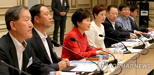 △ 모두발언하는 박 대통령 (서울=연합뉴스) 백승렬 기자 = 박근혜 대통령이 9일 청와대에서 열린 제8차 무역투자진흥회의에서 모두발언하고 있다. 이날 회의에는 정부 관계자와 경제5단체장, 경총 부회장, 제조 관광 건설 기업대표 등 200여명이 참석했다.