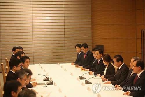 (도쿄=연합뉴스) 조준형 특파원 = 서청원 새누리당 의원 등 한일의원연맹 소속 한국 국회의원들이 10일 아베 신조(安倍晋三) 일본 총리와 면담한다.
