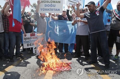 | △ 터키에 거주하는 위구르인들의 반중시위. (AP=연합뉴스 자료사진) |