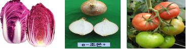 | △ 왼쪽부터 '권농빨강2호'(배추), 'e조은플러스'(양파), 'GS핑크'(토마토). <<농림수산식품기술기획평가원 제공>> |