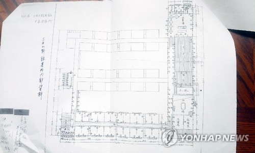 | △ 반도인 도망방지 철조망 신축"…조선인 강제노동 문서발견 (서울=연합뉴스) 한일관계 전문가인 김문길(부산외국어대 명예교수) 한일문화연구소장은 11일 연합뉴스에 공개한 일본 후쿠오카(福岡) 소재 야마노(山野) 탄광의 물자명세서. 용도를 '반도인 합숙소'라고 명기한 총 3장짜리 물자명세서 서류에는 공작물의 규모 또는 구조 항목에 '반도인 도망방지를 위해 합숙(소) 주위에 높이를 7척(尺) 연장하고 140간(間)을 두르는 철조망을 신축하라'고 명시돼 있다. 2015.7.12 photo@yna.co.kr |