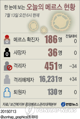 (서울=연합뉴스) 김병규 기자 = 보건복지부 중앙메르스관리대책본부는 13일 중동호흡기증후군(메르스) 신규 환자와 사망자가 모두 발생하지 않았다고 밝혔다.