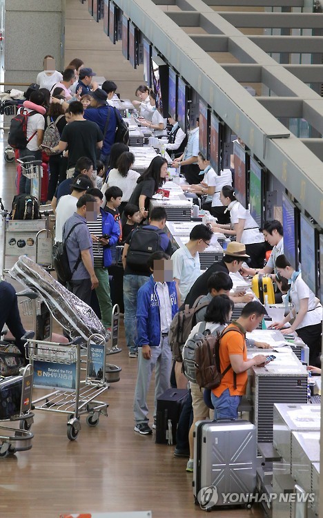 국토교통부와 항공사들의 잠정 통계를 보면 6월 한 달간 항공여객은 599만5천명으로 작년대비 10% 감소했다.