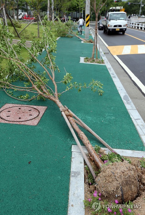 경기도 9개 시·군서 가로수 전도… 태풍 '찬홈' 피해