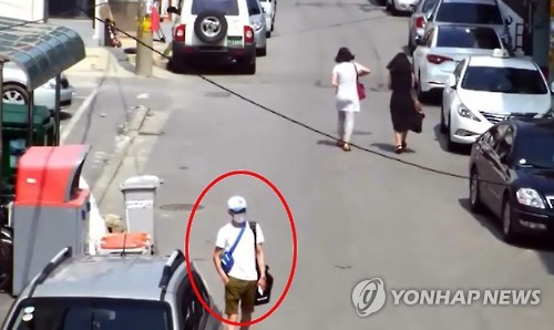 △ 주변 살피는 보이스피싱 자금 전달책 (이천=연합뉴스) 경기 이천경찰서는 금융기관 등을 사칭, 피해자들에게 "금융정보가 유출됐으니 냉장고에 현금을 찾아 보관하라"며 집에 찾아가 돈을 훔친 혐의(절도)로 최모(34·중국 국적)을 구속했다고 13일 밝혔다. 피해자 집에 들어가기 전 주변을 살피는 모습. 2015.7.13 <<이천경찰서>> you@yna.co.kr