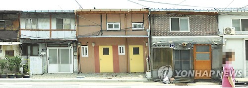 △ '가난까지 상품화'…쪽방촌 괭이부리마을의 눈물 (인천=연합뉴스) 국내 대표적인 쪽방촌으로 알려진 인천 괭이부리마을 한가운데에 게스트하우스와 유사한 외부인 생활 체험관이 들어서려 하자 주민들이 집단 반발하고 나섰다. 사진은 괭이부리마을 쪽방촌 모습. 가운데 황토색 집은 현재 마을 사랑방으로 쓰고 있지만 인천시 동구는 이를 리모델링해 '옛 생활 체험관'으로 활용할 계획이다. 2015.7.12 <<만석동 공부방 '기찻길옆작은학교' 상근교사 임종연씨 제공>> son@yna.co.kr
