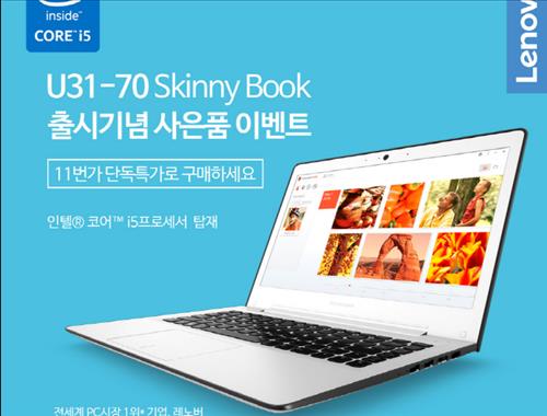(서울=연합뉴스) 고상민 기자 = 한국레노버가 슬림 노트북(모델명: U31·U41) 출시를 기념해 온라인 쇼핑몰 11번가와 옥션에서 이벤트를 벌인다.