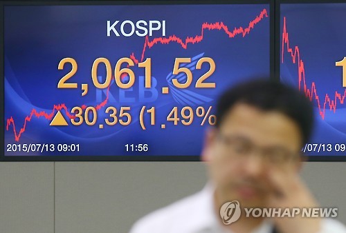 이날 코스피는 전 거래일보다 30.35포인트(1.49%) 오른 2,061.52에, 코스닥 지수는 18.74포인트(2.56%) 급등한 749.46에 각각 장을 마쳤다.