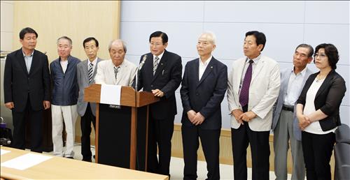 △ (청주=연합뉴스) 전창해 기자 = 청주·청원 문화원 관계자들이 지난달 12일 청주시청 브리핑룸에서 기자회견을 열어 양 문화원의 통합을 선언하고 있다. <<연합뉴스 DB>>