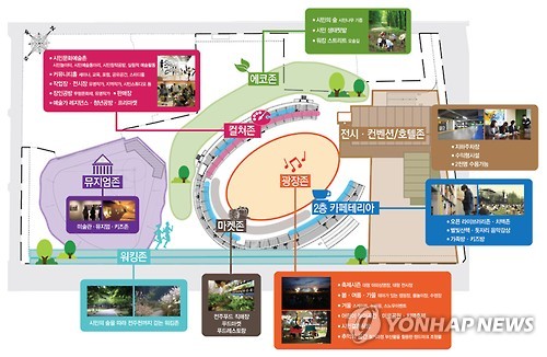 개발은 총 1천500억원을 투입, 4년간 종합경기장 일부를 허물어 컨벤션과 호텔(민간투자)을 짓고 나머지 부지에는 연간 4천만명 이상이 찾는 미국 뉴욕 맨해튼의 '센트럴 파크'처럼 도심 속 시민공원으로 만드는 방식으로 이뤄진다.