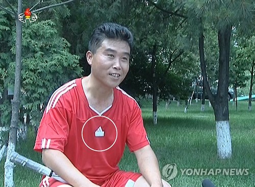 16일 조선중앙TV가 최근 방영한 프로그램 '정구 운동을 대중화하여'를 분석한 결과, 외제 운동복이나 운동화를 착용한 북한 주민들은 영어로 된 외제상표를 검은색이나 흰색 테이프로 가리고 있는 것으로 드러났다.