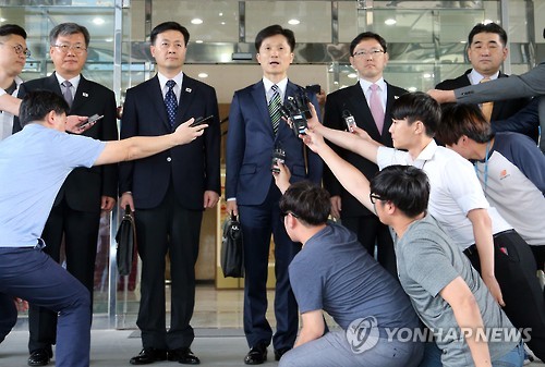 | △ 질문에 답하는 이상민 단장 (서울=연합뉴스) 최재구 기자 = 통일부 이상민 남북협력지구발전기획단장 등 개성공단 남북공동위원회 남측대표단이 16일 제6차 개성공단 공동위원회 회담에 참석하기 위해 서울 종로구 남북회담본부를 나서며 취재진의 질문에 답하고 있다. jjaeck9@yna.co.kr |