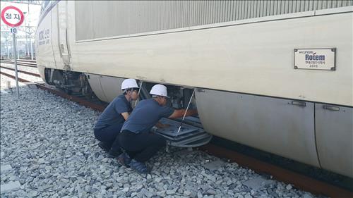 △ 코레일 광주기지에서 호남고속철 차량상태를 점검하고 있는 현대로템 직원들.<<현대로템 제공>>