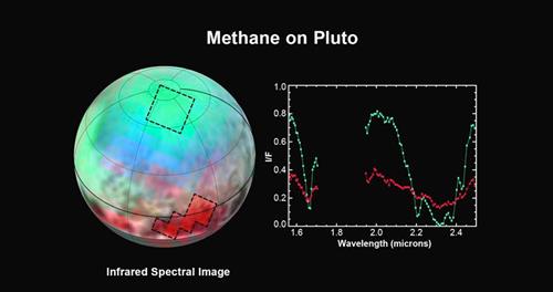 분석 결과 명왕성 표면에는 낮은 온도 때문에 메탄과 얼음 상태의 물이 뒤섞여 고체 상태가 된 '메탄 얼음'이 매우 풍부하지만, 지역에 따라 상태에 큰 차이가 있는 것으로 드러났다.