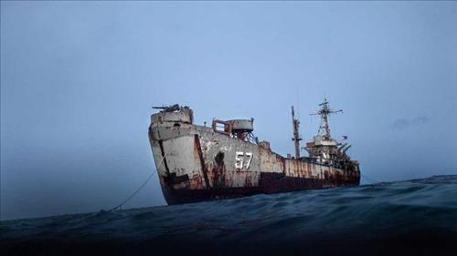 | △ 1999년 아융인 인근에 좌초된 필리핀 군함. <<환구시보 캡처>> |