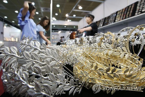 △ 2015 한국주얼리페어 개막 (서울=연합뉴스) 임헌정 기자 = 16일 서울 삼성동 코엑스에서 개막한 '2015 한국주얼리페어'에서 참관객들이 아름다운 주얼리 제품을 살펴보고 있다.