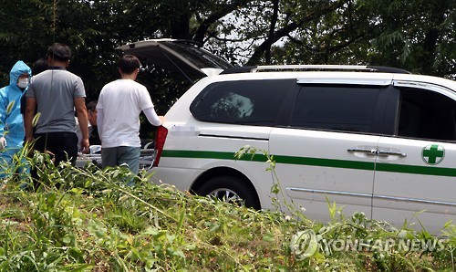 △ 수습되는 수원 실종 여대생 시신 (평택=연합뉴스) 류수현 기자 = 15일 경기도 평택시의 한 저수지 인근 야산에서 숨진 채 발견된 A(22·여)씨의 시신이 수습되고 있다. 2015.7.15 you@yna.co.kr