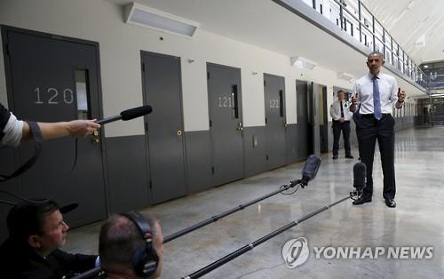 (워싱턴=연합뉴스) 신지홍 특파원 = 버락 오바마 미국 대통령이 16일(현지시간) 현직 대통령으로는 최초로 연방교도소를 찾았다.