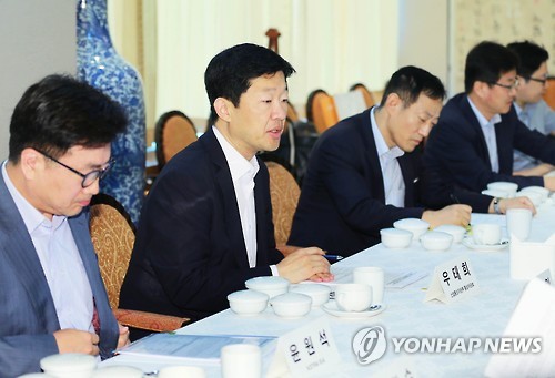 △ 우태희 차관보, 제8차 경제통상연구모임 참석 (서울=연합뉴스) 우태희 산업통상자원부 통상차관보가 17일 오전 서울 역삼동 기술센터 용궁에서 식품산업 관련 산학연 등 관계자들이 참석한 가운데 열린 '제8차 경제통상연구모임'에 참석, 인사말을 하고 있다. 이날 모임은 중국 식품분야 비관세장벽 현황과 한-중 FTA활용방안, 식품산업 해외진출 지원현황과 계획 등을 논의하기 위해 열렸다. (산업통상자원부 제공)