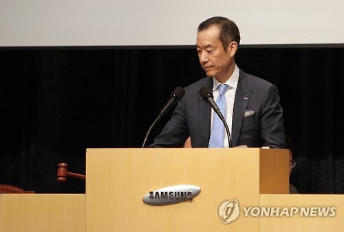 △ 개회선언하는 최치훈 삼성물산 건설부문 대표이사 사장 (서울=연합뉴스) 최치훈 삼성물산 건설부문 대표이사 사장이 17일 오전 서울 양재동 aT센터에서 열린 제일모직과의 합병계약 안건을 주주 결의에 부치는 임시 주주총회의 개회 선언을 하고 있다. (삼성물산 제공)