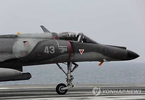 △ 프랑스 해군 항공모함 샤를 드골의 함재기가 지난 3월18일(현지시간) 이라크와 시리아에서 세력을 펼치고 있는 수니파 극단주의 무장세력 '이슬람국가'(IS)에 대한 공습 임무를 수행한 뒤 걸프만에 머물고 있는 모함 칼빈슨에 착륙하고 있다. marshal@yna.co.kr