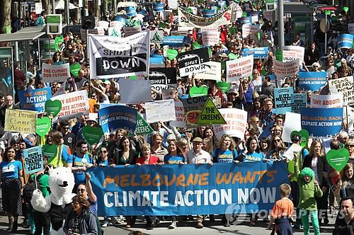 | △ 지난해 호주 멜버른에서 벌어진 기후 변화 시위 행진 (EPA=연합뉴스) |