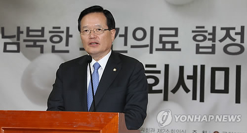 | △ 정의화 국회의장이 지난 5월4일 국회 의원회관에서 열린 남북한 보건의료 협정 추진을 위한 국회세미나에서 환영사를 하고 있다. |
