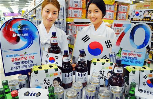 광복 70주년을 맞아 오는 8월 19일까지 전국 140개 홈플러스 점포에서 하이트맥주·참이슬 등 하이트진로 상품 구매 때 판매금의 3%를 홈플러스 e파란재단에 기부해 해외 독립 유적지와 광복기념 시설의 유지·보수 비용으로 쓸 계획이다.